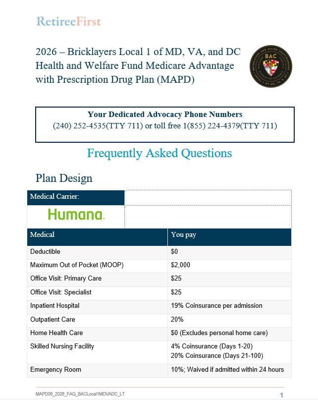 Welcome to the RetireeFirst Advocacy page for the Bricklayers Local 1 of MD, VA and DC.