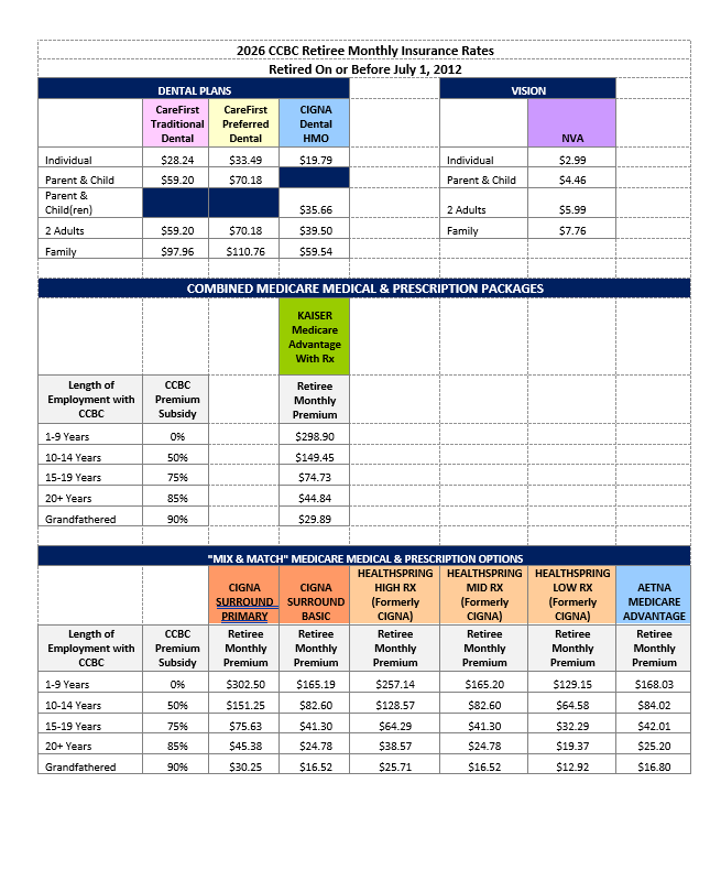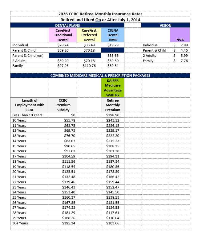 For any questions, please continue to reach out to your Community College of Baltimore County dedicated team of Retiree Advocates Monday through Friday 8:00 am – 5:00 pm EST.