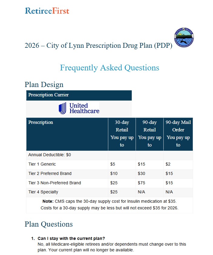 For any questions, please continue to reach out to your City of Lynn dedicated team of Retiree Advocates Monday through Friday 8:00 am – 5:00 pm EST.
