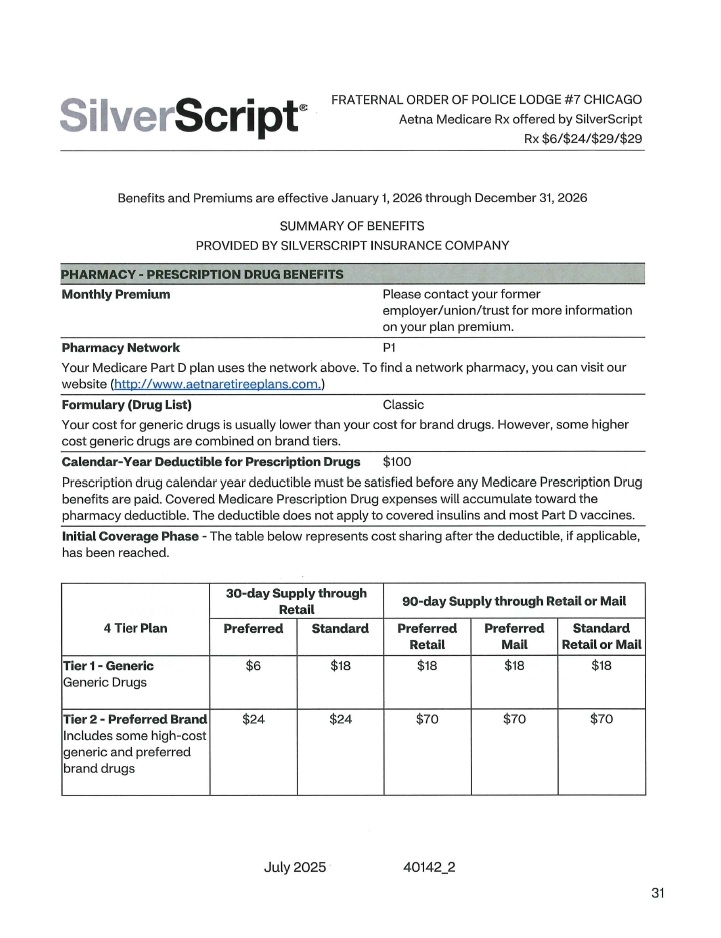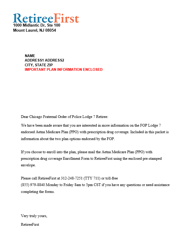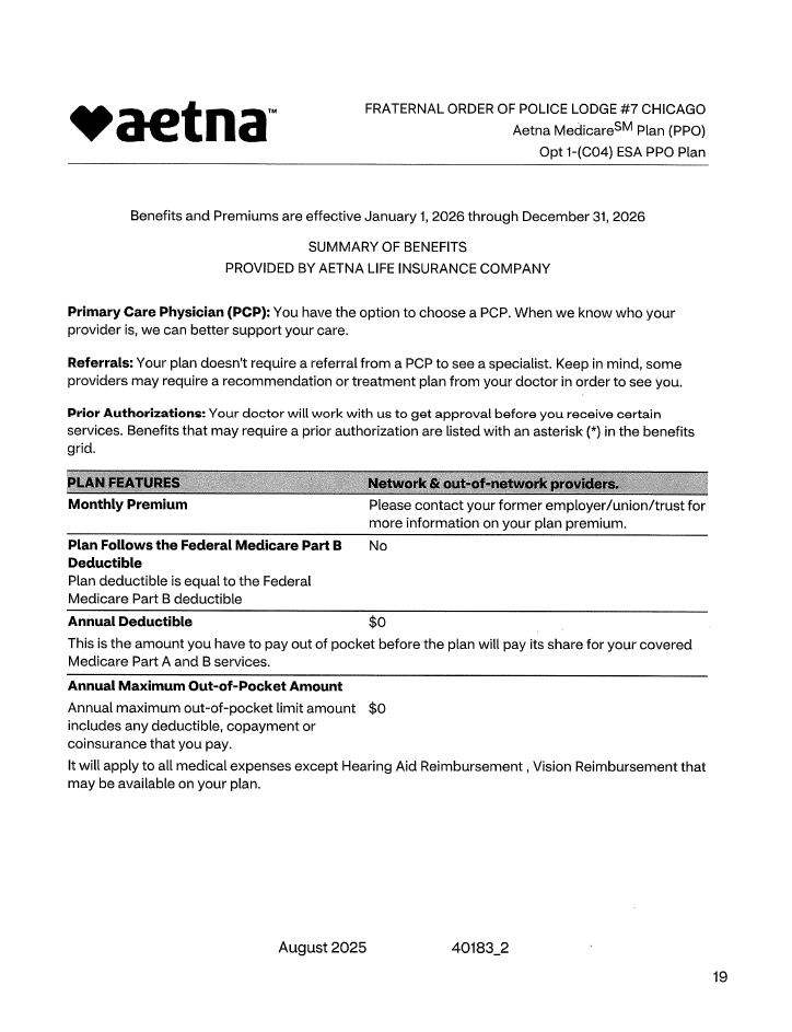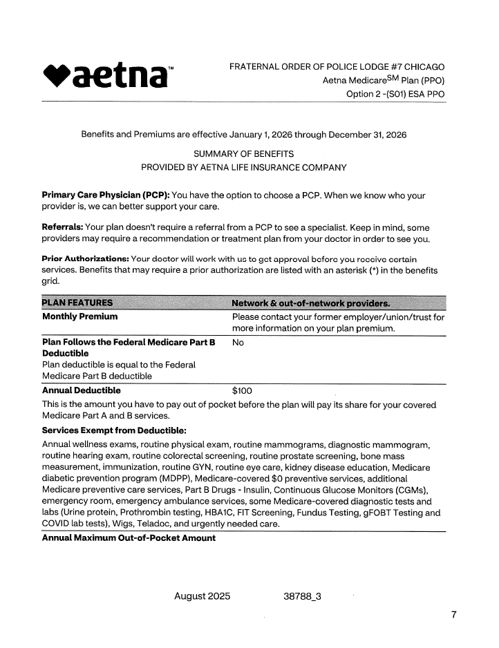 The Chicago FOP Lodge 7 is pleased to announce that the current plans with Aetna will