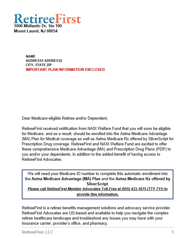 Welcome to the RetireeFirst Retiree Center for NASI Welfare Fund