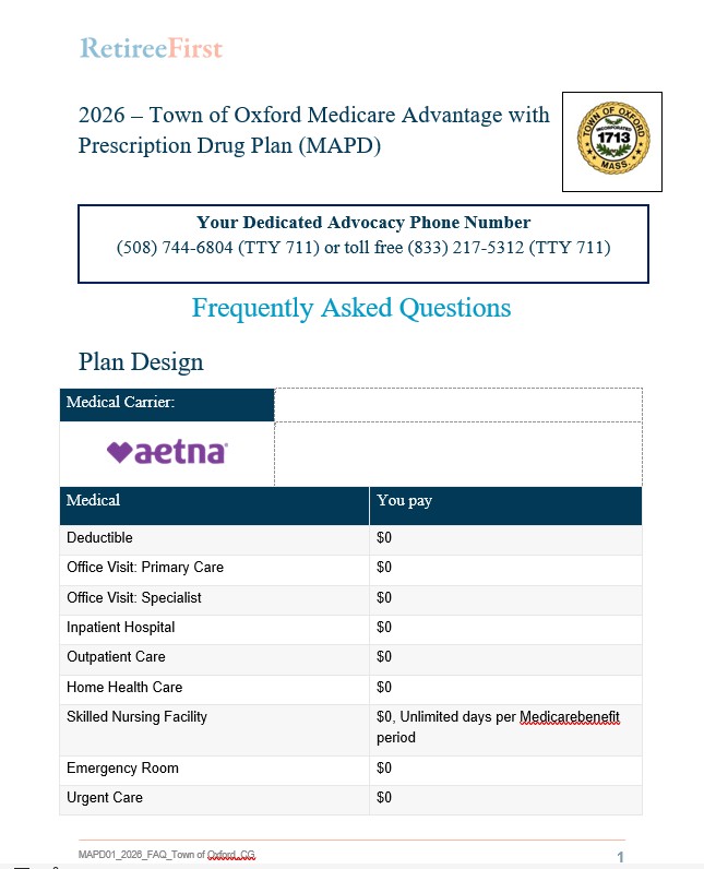 Welcome to the RetireeFirst Retiree Advocacy page for the Town of Oxford.