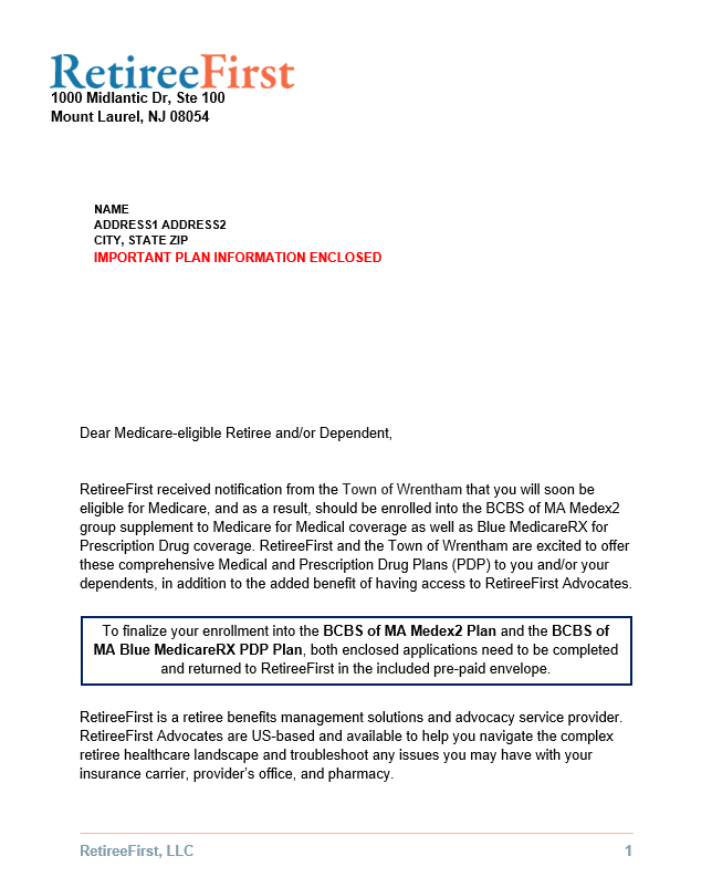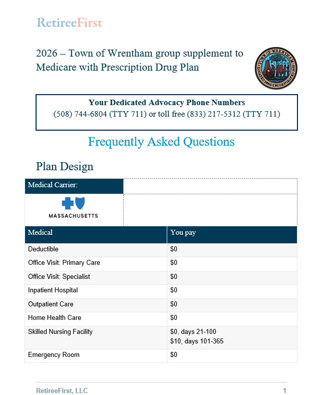 For any questions, please continue to reach out to your Town of Wrentham dedicated team of Retiree Advocates Monday through Friday 8:00 am – 5:00 pm EST.